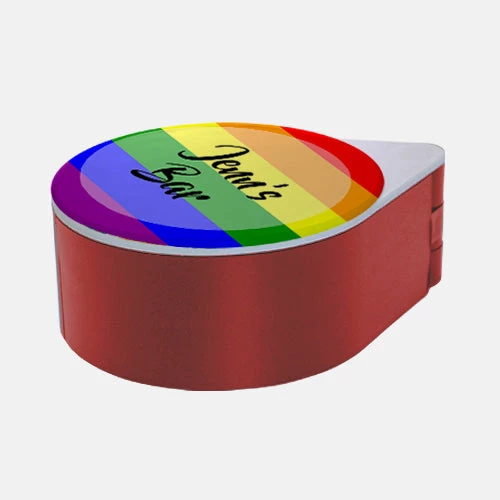 The Pride “add your name” Salt Rimmer Lid will be a great addition for any bar! This unique plastic top can be custom printed with your bar name or any text. The printed salt rimmer top is interchangeable with any standard size salt and sugar rimmer. It simply snaps in to replace the standard color top. You can purchase the custom printed top alone or add one of our 3-Tier Salt and Sugar Rimmers with sponge to your order in black, blue, green or red.