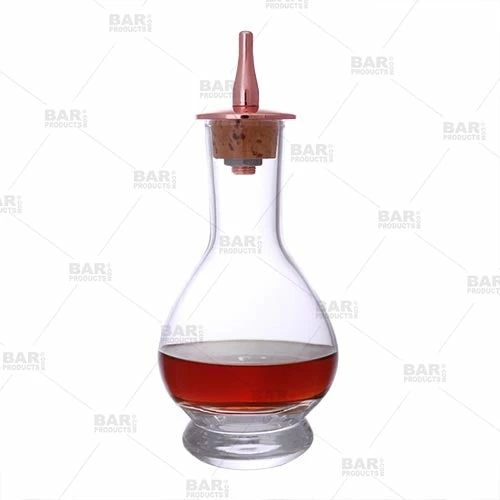 This BarConic® 70ml Bitter Bottle is the perfect piece of glassware to showcase and dispense your bitters flavors. The clear glass will allow your bitters color to clearly and elegantly show through. Add a dash of citrus, nutty, decadent or floral bitters to your cocktail using this professionally elegant glassware piece. The dasher is a beautiful copper plated stainless steel, complete with a cork stopper and designed to perfectly dash bitters into any number of cocktails and mixed drinks.