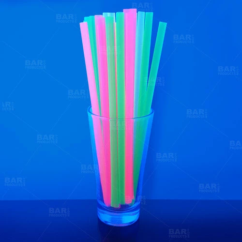 Drinking Straws are a necessity in any bar, nightclub, restaurant or anywhere else that cocktails, soda, water and teas are served. These jumbo 8″ neon unwrapped straws are ideal for stocking your bar caddies or refilling your straw dispensers. These Neon drinking straws will surely turn your drink from ordinary to extraordinary with their fun, colorful look. The assorted neon colors are well suited for all type events and will glow under black lights.