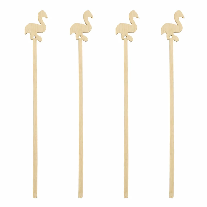 Enhance the presentation of your tiki cocktail with these flamingo bamboo swizzle sticks. Made of bamboo wood, these sticks are durable and come with a crafted flamingo on top of every stick. These swizzle sticks are the perfect accessory to have on hand to make sure your cocktails get the right amount of mixture when making that special drink.