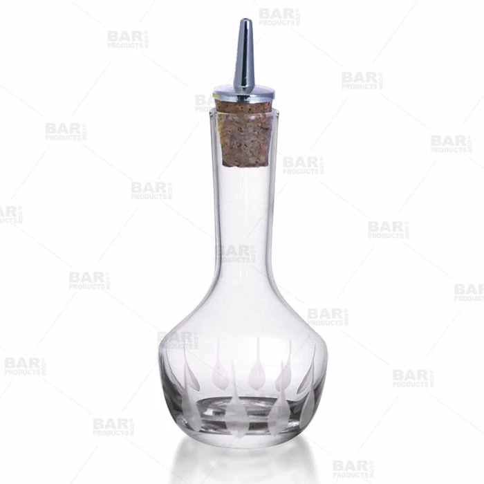 Bitters bottles are meant to be paired with our cork dashers or can be used with any standard liquor pour spout. The cork dashers are perfect for allowing just a dash of bitters, careful not to over pour. We also offer Dasher Cork Caps to keep your bitters safe from fruit flies and other unwanted particles. Washing the special glassware by hand with mild detergent is recommended. We offer a full line of feather etched glass items, perfect for creating a complete set of elegant glassware to professionally showcase.