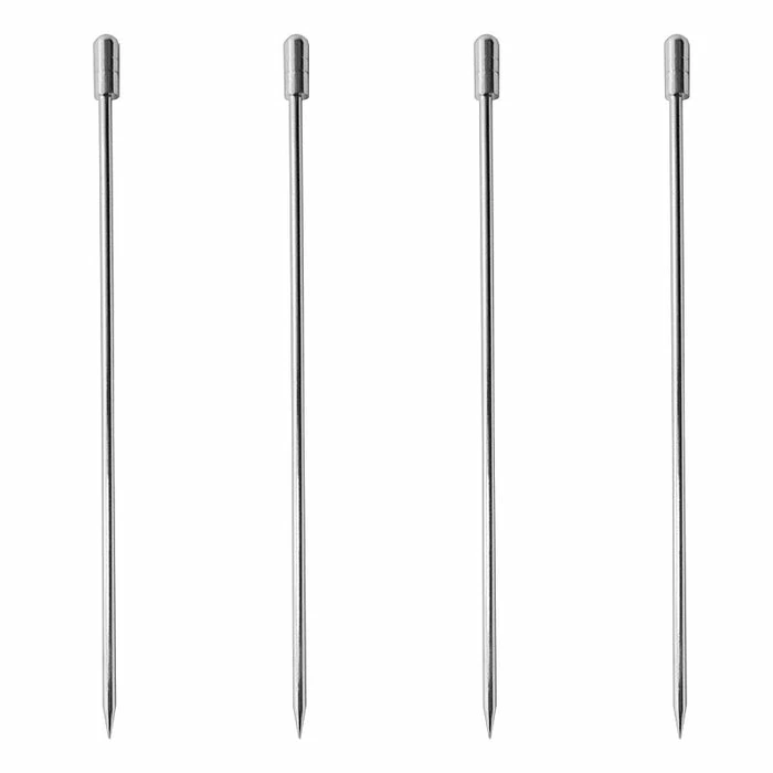 BarConic® reusable stainless steel cylinder design cocktail picks. Garnish any type of cocktail with these light easy to use cocktail picks. They are perfect for any event or occasion, showing your decorative touch has a luxury feel to guests. They feature a pointed end, great for skewering olives, cherries, appetizers, cheese, and fruit wedges. They measure 4 1/4″ and are a pack of 4.