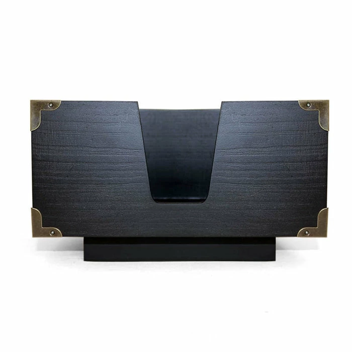 Wooden bar supplies is trending and this handcrafted napkin caddy is a great addition to the revolution! Superb quality with metal corner trim takes this bar caddy from ordinary to extraordinary. You are sure to appreciate the quality construction of this piece along with its rustic appeal. Designed to hold traditional sized beverage napkins and features 2 side pockets perfect for your straws, stirrers and/or cocktail picks. The base elevates the caddy making it ideal for placement on your bar or fit nicely along your bar mat/service rail.