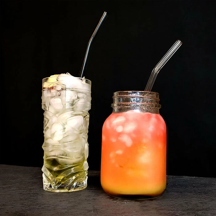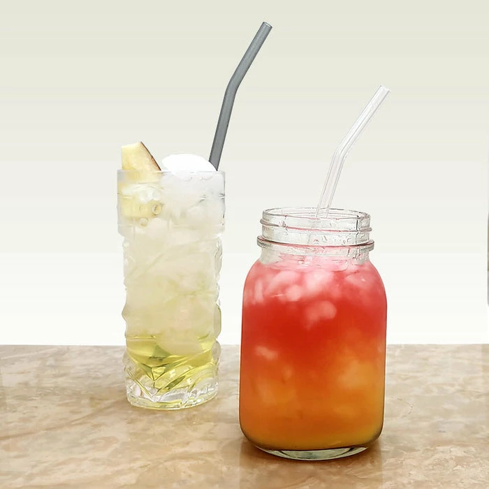 Borosilicate bent glass straws are an elegant way to add the most refined touch to your cocktails, whether you’re hosting a party at home or a master mixologist preparing cocktails for customers. These bent glass straws are beautiful, elegant, and reusable. Go green with an eco-friendly straw that will certainly get tons of use in many different beverages. With our extra fat 9 in. clear straw you can enjoy frozen cocktails and or smoothies.These borosilicate bent glass straws come in clear or smoke colors and 9 inches. or 11 inches.