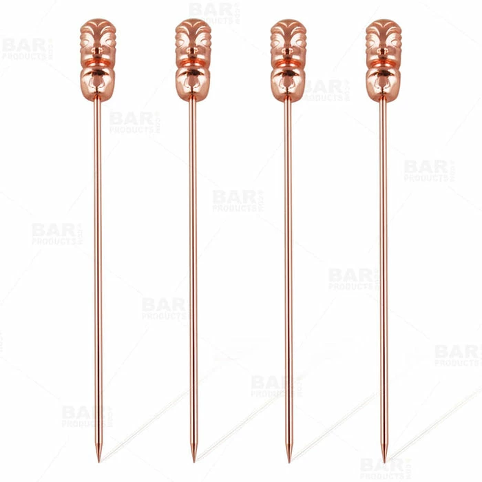 Add a touch of the pacific islands along with a classy copper element to your next cocktail party. These high quality copper plated tiki-inspired cocktail picks will do just that! They are gorgeously polished with desirably detailed reflections, taking the ordinary to extraordinary. Garnish any type of cocktail with these gorgeous metal cocktail picks and impress your guests all night long. Sold in packs of 4, these cocktail picks are stainless steel with a beautiful copper plating.