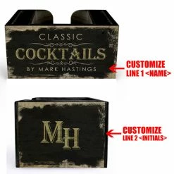 This beautifully rustic wooden Bar Caddy is an exceptional addition to any type of bar setting! The best part? They are easily customized with your very own name and personalization! Simply type in your text, we do the rest! The quality craftsmanship (handmade in the USA) is beyond compare. Designed with 3 compartments perfect for storing your bev naps, straws and stirrers. Durably built with a quality imprint dyed right into the wood maintains a desirable (and trendy) rustic wooden appeal.