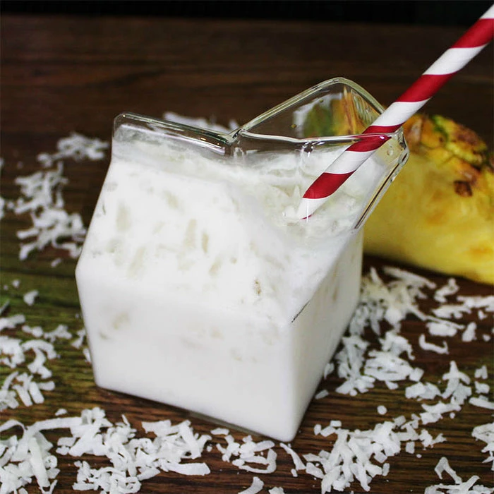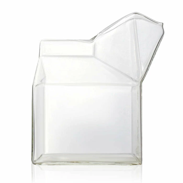 Made from high borosilicate glass and designed to look like a traditional milk carton. It will add a touch of personality to any table or counter top. It’s quirky, it’s got a retro feel, it’s also elegant and it’s a very cool way to serve up any favorite cocktails. Or fill with cream to pour over your strawberries or why not fill with sauce to pour over your ice cream and desserts? Dishwasher safe and measures 4.25″ H x 3.75″ W x 3″ L Holds 8 oz.