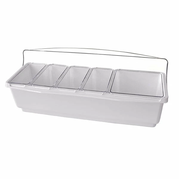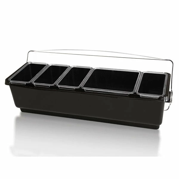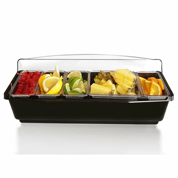 The bar condiment holder and garnish center is a necessary part of any bartending operation. If your bar goes through some types of cocktail condiments more than others, then your bartenders will love the modern design of the Roll Top Condiment Holder (Fruit Tray). These garnish trays feature a domed lid that rotates back for easy access. The increased capacity when closed, and the swappable 1-Quart (4) and 2-Quart (1) super deep trays come in handy so your bartenders will spend less time refilling.