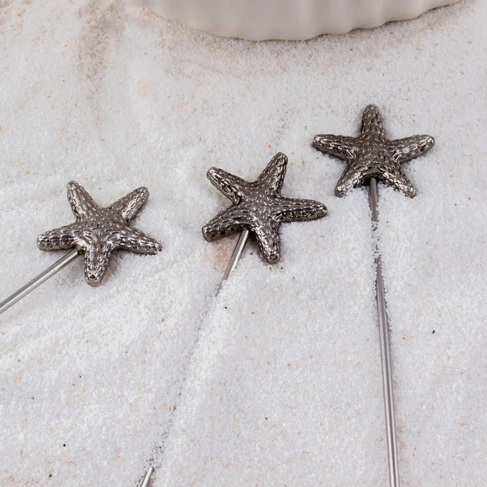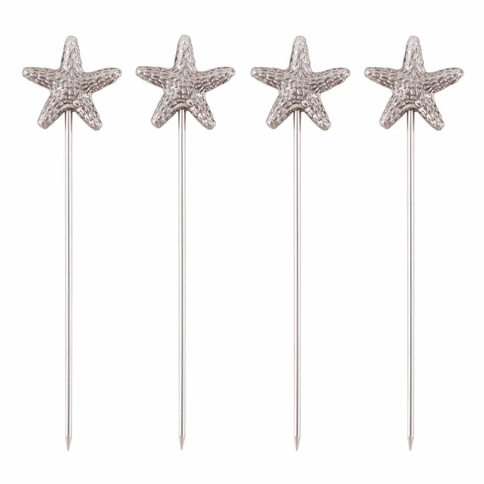 These BarConic® reusable stainless steel sea star cocktail picks are perfect for any event or occasion. They make a unique additive to your delicious tropical themed cocktail creations. They feature a pointed end, great for skewering olives, cherries, appetizers, cheese, and fruit wedges. They measure 4 3/8″ and come in a pack of 4.