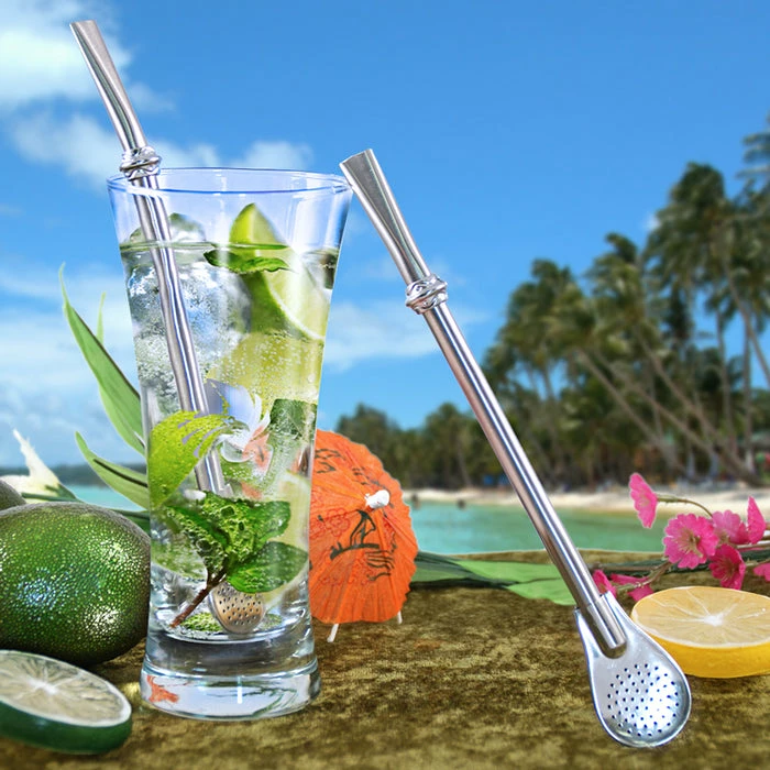 This stainless steel filtered straw is the high-end choice for meticulous cocktail drinkers. It features an angled neck and a filtered bulb with perforations on two sides, making it ideal for herbal and muddled cocktails, such as mojitos or yerba mate. A perfect length of 6.5 inches, this filtered straw is a must have for making craft cocktails.