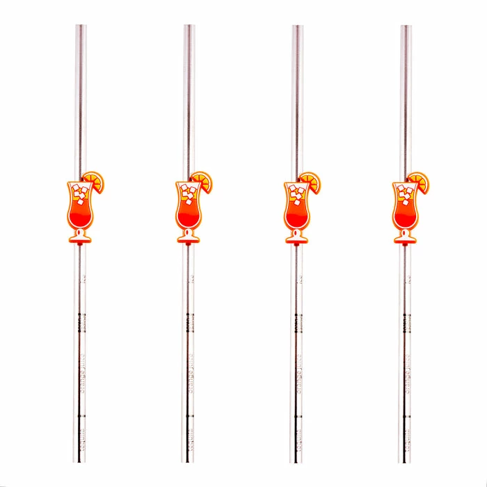 Making cocktails has never been easier. These durable stainless steel straws are perfect for making cocktails for your friends and family. Each straw is specifically designed with its own recipe for the cocktail it is for. They are laser engraved with the ingredients and the portion size of the cocktail on each straw. They also feature a highly detailed silicone cut out of little cocktails that are moveable.