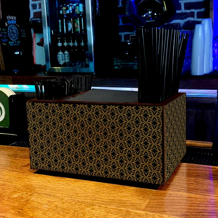 - 3 compartments designed to accommodate napkins, straws and stirrers